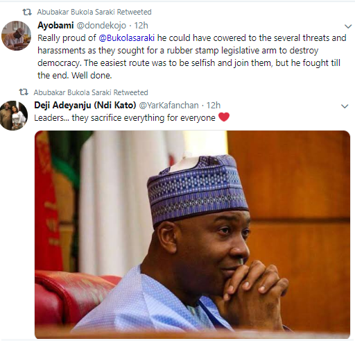His supporters stormed his twitter handle to celebrate him for standing tall despite the challenges he experienced while in the senate. See the various motivational messages he has retweeted so far below…