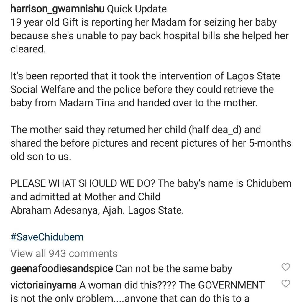 New photos of baby Chidubem showed him looking emaciated and sickly.