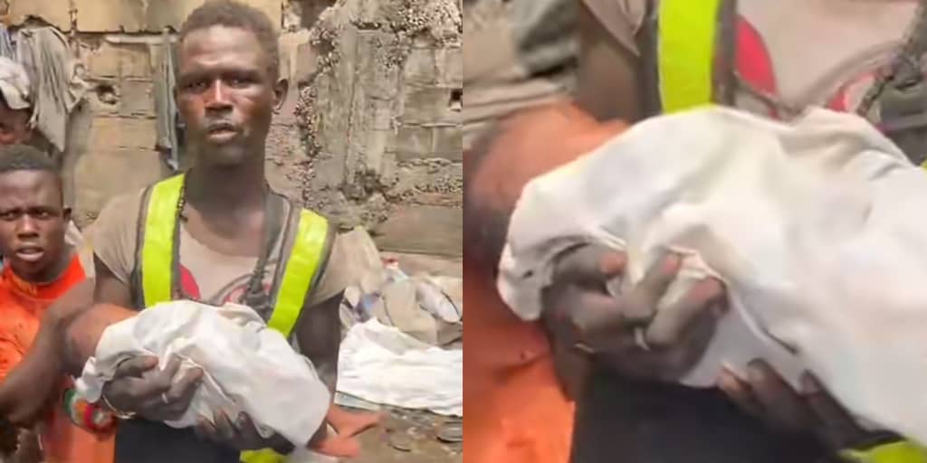 A woman’s voice could also be heard narrating how the man stumbled upon the baby while going about his daily work of picking waste.
