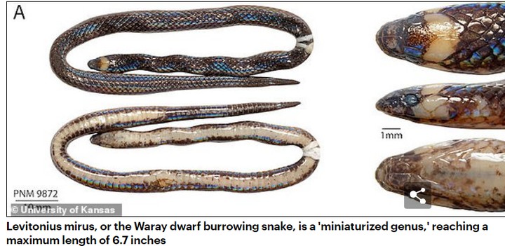 Levitonius is designated a ‘miniaturized genus’ of snake—reaching a maximum length of 6.7 inches