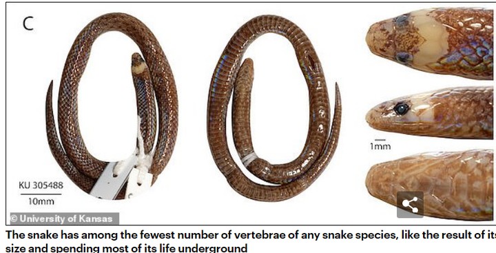 It has among the fewest number of vertebrae of any snake species, according to Weinell, likely the result of miniaturization and an adaptation for spending most of its life underground.