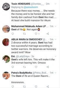 “Nigerians are reacting following the announcement by Prophetess Naomi that she is calling it quits with the Ooni of Ife, Oba Adeyeye Ogunwusi Ojaja II.
