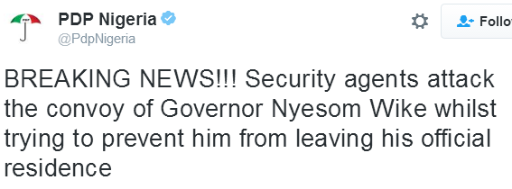 PDP made the allegation on its twitter handle. Police have reportedly cordoned off the Rivers state government House.