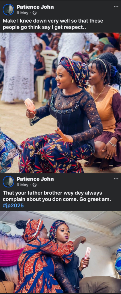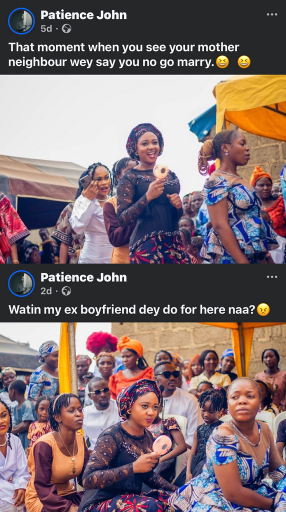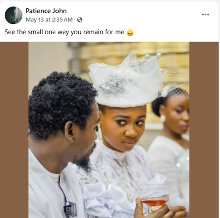 Patience John, who got married this month, has been sharing photos from the ceremonies with hilarious and witty captions accurately complementing her facial expressions.