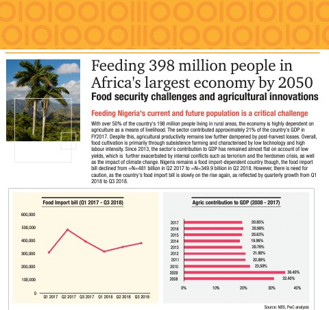 From a report from Pwc talking about Food security challenges and agricultural innovations,an infographic was released showing the percentage contribution of agricultural sector to Nigeria’s GDP