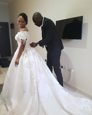 Chioma Otisi is absolutely stunning in a couture gown by Yemi Kosibah. She and Noble Igwe have walked down the aisle. More photos after the cut…