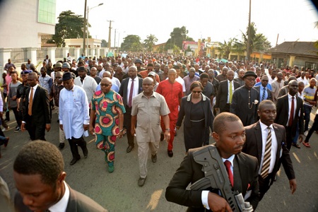 The Governor of Rivers State, Chief Nyesom Wike led thousands of people on the streets of Rivers on Thursday to protest the alleged killings by the police and other security agencies during the December 10 rerun elections.