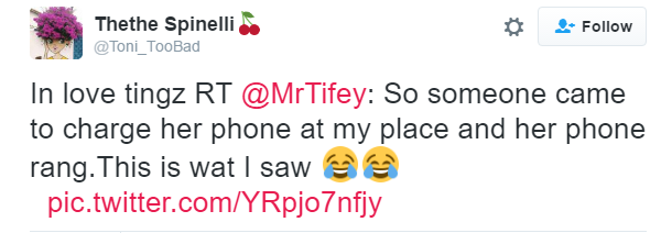 So someone came to charge her phone at my place and her phone rang. This is what I saw, see photo below:-