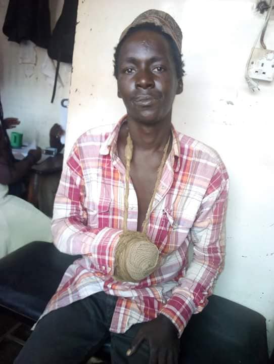 It was reported that the young man has been covering his hand with dirty rugs faking to be amputated in order to collect as much money as he can from the unsuspecting sympathizers.