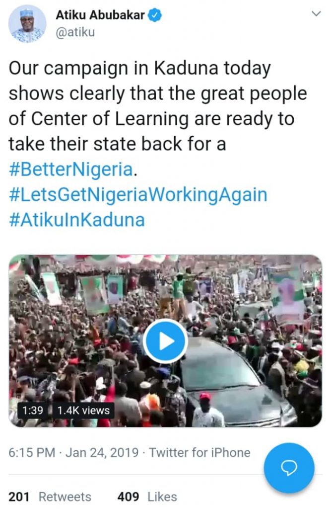 Here are some more photos and videos from Atiku’s campaign in Kaduna.