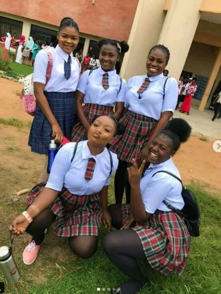 Thompson Damilola Nancy and her colleagues who finished from the Department of Political Science at the Osun State University in the South-western part of Nigeria dressed like secondary school students to write their final examination. The expensive-looking young lady who has over 11,000 followers on her Instagram page rocked shirts, ties and shirts with lovely shoes along with her elated colleagues. Their pictures are making the rounds online with several top commenters making inquiries about their love lives.