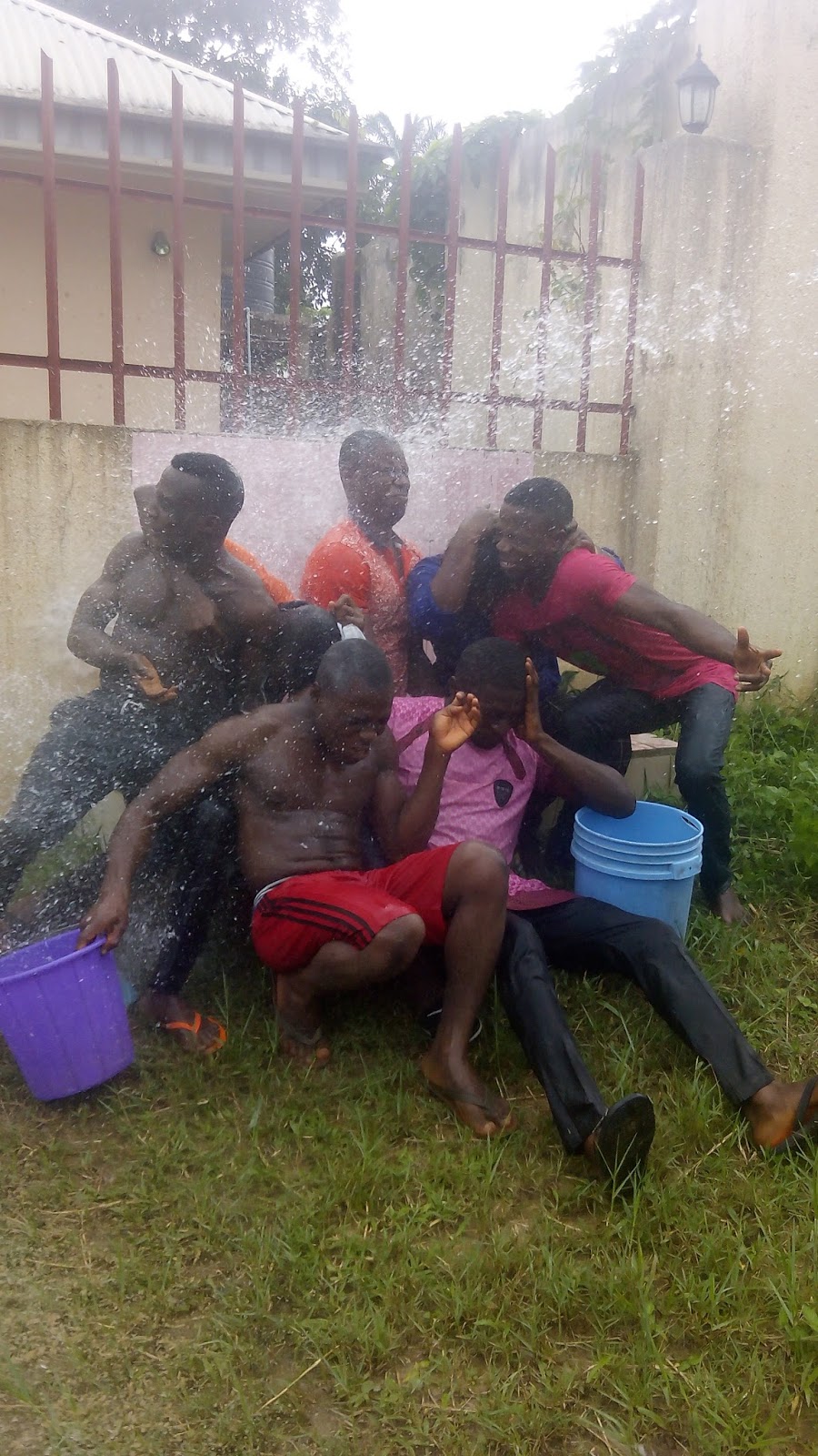 As it has always been the norm of most higher institutions in Nigeria that the students celebrate after writing their final papers, the jubilating students spiced up the celebration by pouring each other water and drinks.