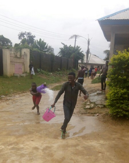 As it has always been the norm of most higher institutions in Nigeria that the students celebrate after writing their final papers, the jubilating students spiced up the celebration by pouring each other water and drinks.