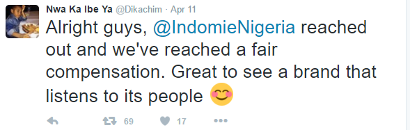 Indomie Noodles has compensated @Dikachim, the guy who recently went viral for creating a hilarious fuel queue and Indomie tweet that the noodles company later used in an advert.