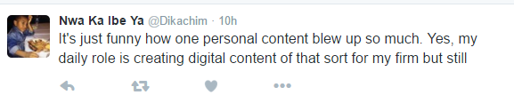 Dikachim had called out the company after he saw they had created an ad out of his tweet and after Nigerians joined in asking he gets compensated, Dikachim tweeted yesterday that he and the company has reached a favourable settlement.