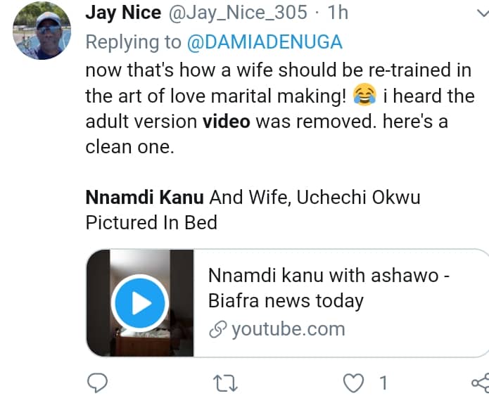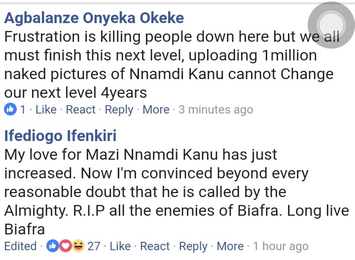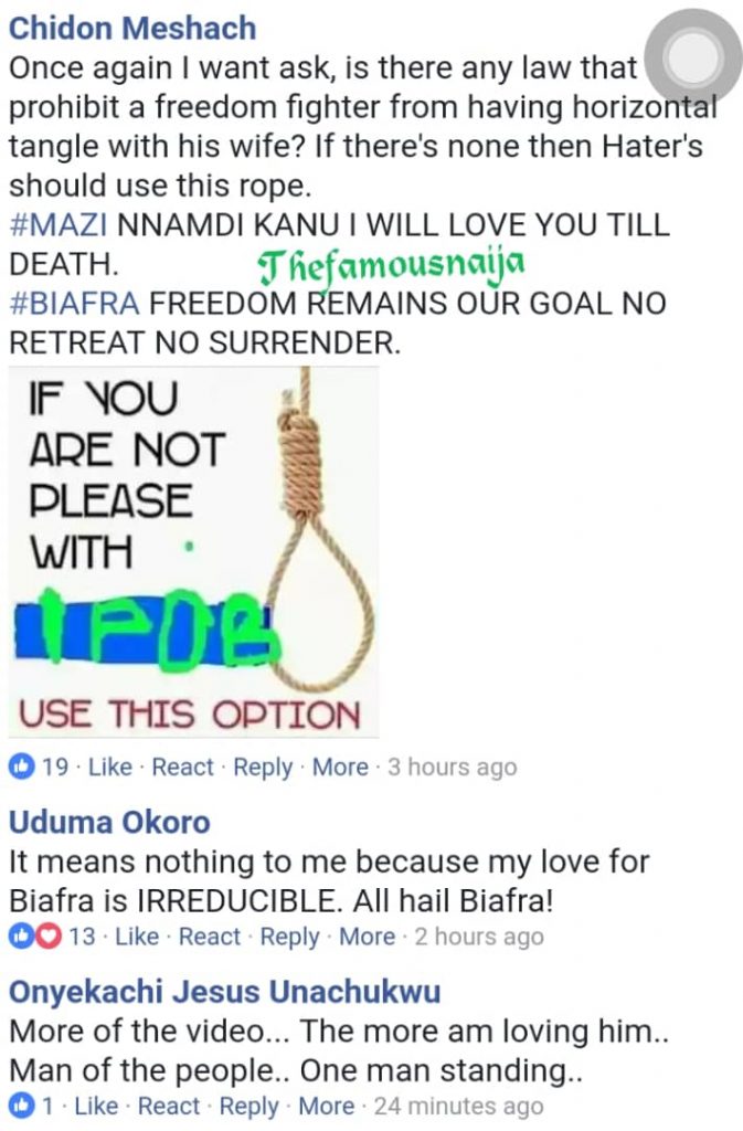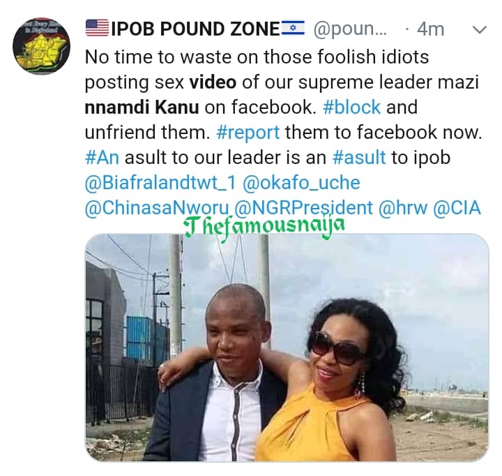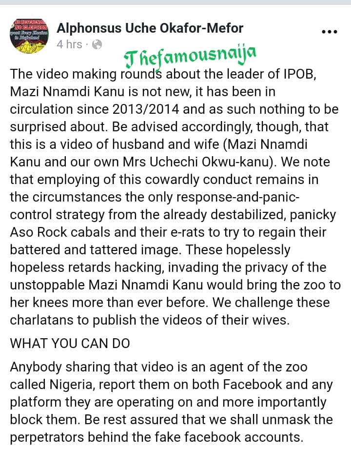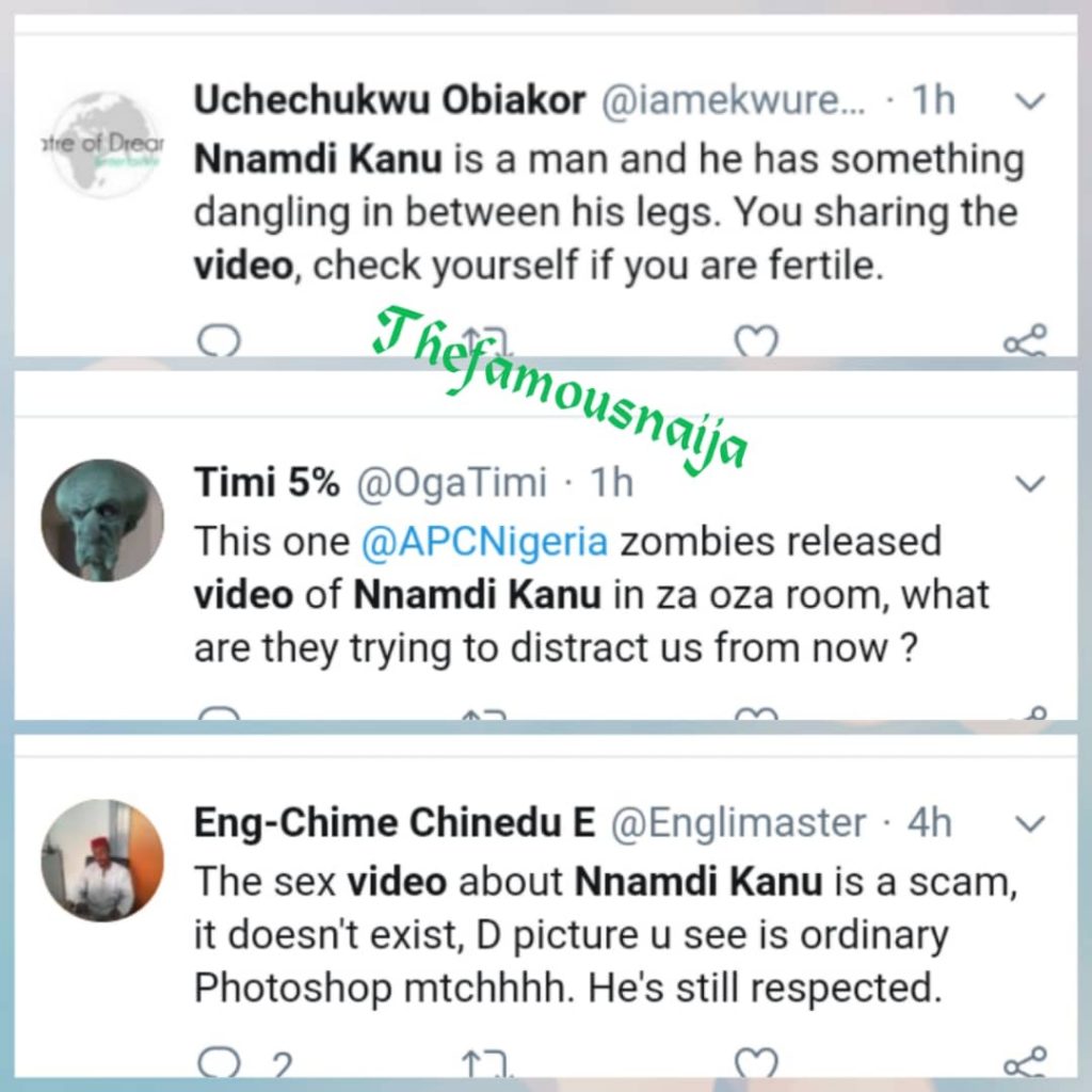 IPOB members have reacted to the after sex video. Some are wondering if it’s a crime to have sex with one’s wife. While some others are blaming APC government for the leaked video.