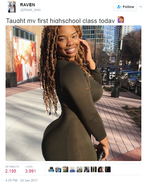 This curvaceous teacher has stolen hearts on Twitter after she posted this photo on her first day as a high school teacher. No one is focusing on her achievement, but on her curves. Will students even be able to concentrate on their studies with this kind of “Killer Structure?” We hope they are