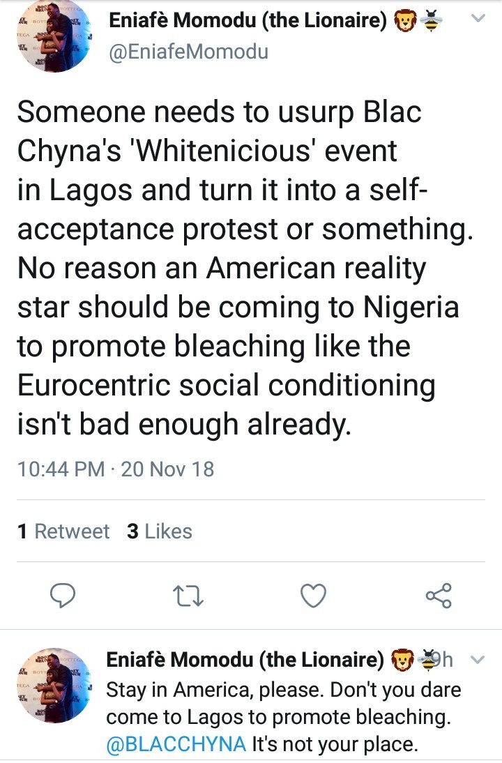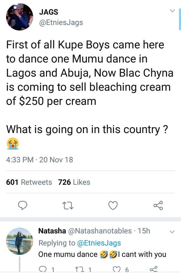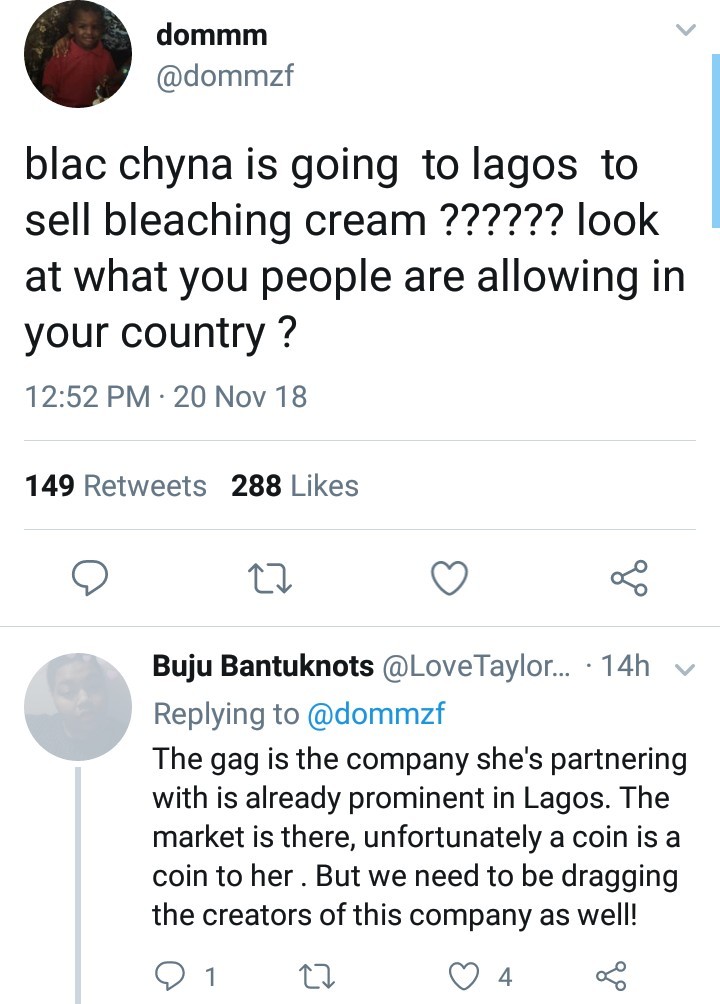 But there are a few people who have defended her, saying that Nigerians will always buy bleaching cream whether Chyna is coming to sell it to them or not.