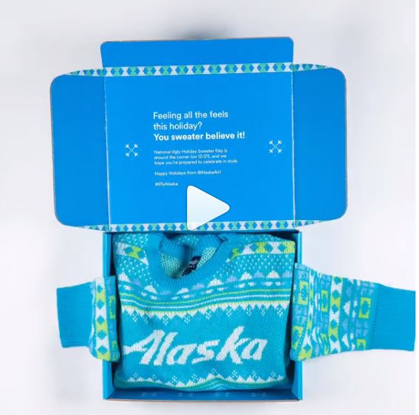 The Alaska Airlines decided to go outside the norm and decide to give their flyers a customized sweater and T-Shirt each. Its snowing in most parts of Europe, America and other parts of the world and so the management decided to gift the flyers a sweater each to celebrate the Ugly Sweater Day/Christmas and Also to thank their loyal customers over the year.