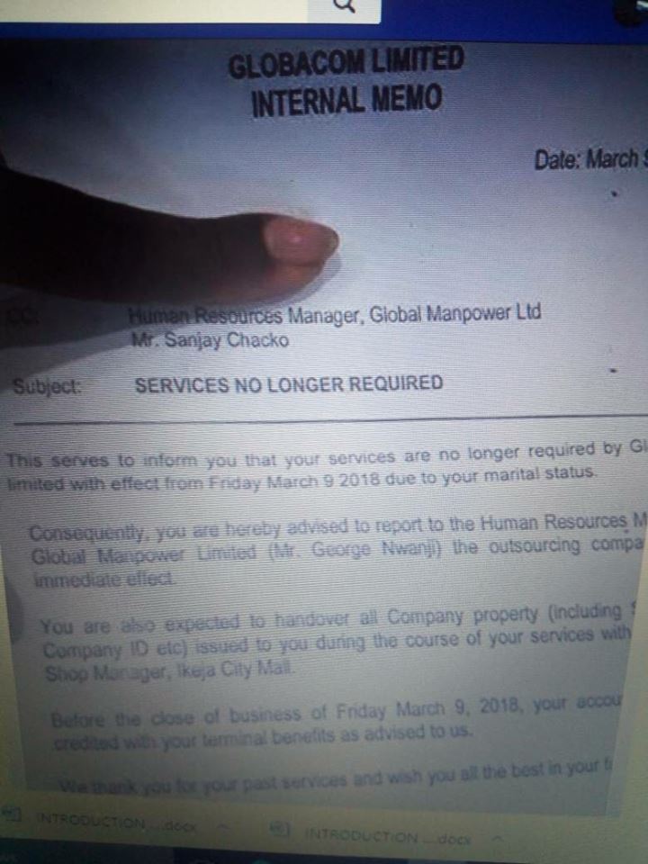Sequel to the rumor going on social media that Glo fires married women cos of their marital status, a new fact has emerged to substantiate the claim.