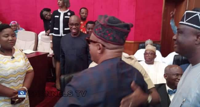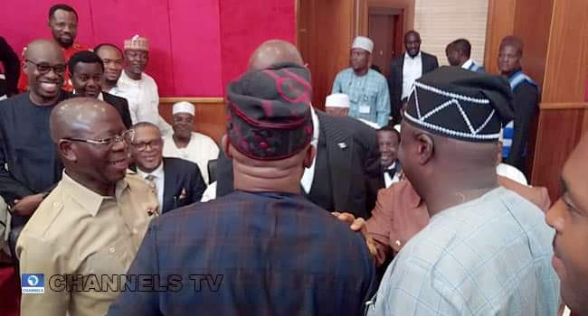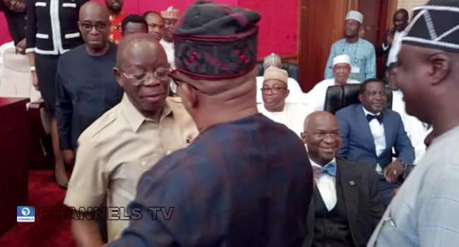 Oshiomhole, Secondus, In Warm Embrace At Election Tribunal