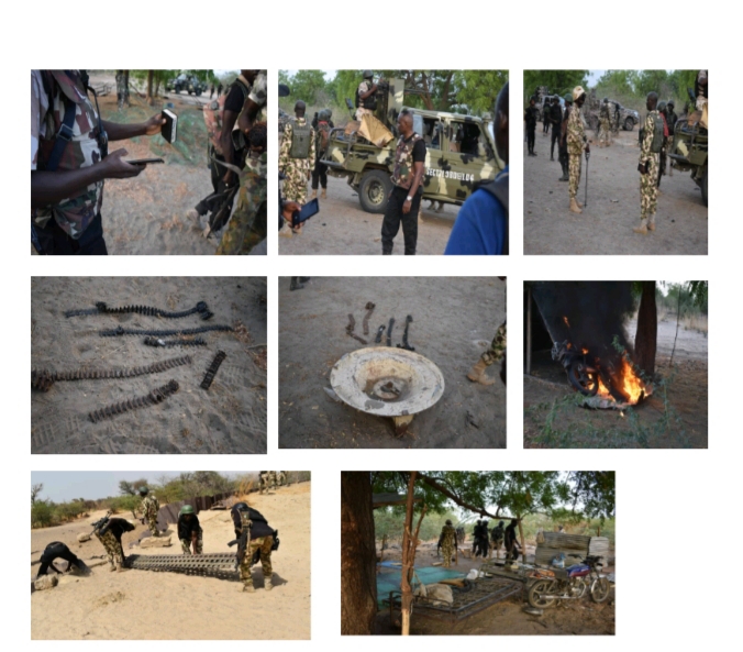 In the same vein, one Gun Truck, one Vehicle Borne Improvised Explosive Device, one Toyota Starlet car and several makeshift structures belonging to the terrorists were destroyed by the valiant troops within the period. Regrettably, one officer paid the supreme price while one soldier was wounded in action.The wounded personnel has since been evacuated to a military medical facility where he is recuperating.