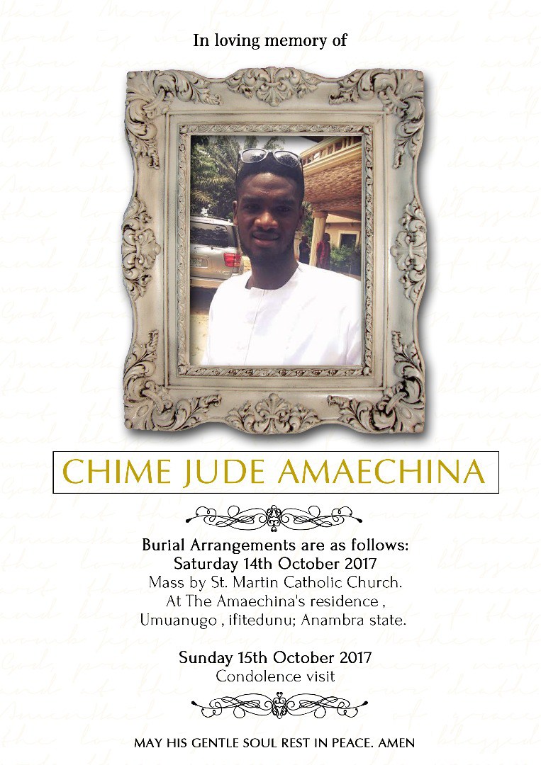 In an exclusive conversation with NET earlier in the week, Chime Amaechi‘s family dismissed allegations that the deaths could have been caused by a drug overdose. ‘My late son was not a drug user. Like me he didn’t even drink and when he did, it was always in very small quantities. He was a level-head, nice human being.Even when he left school and started business, he would always let me know his next line of action, so I am surprised that these lies are being spread about him’, his father said.