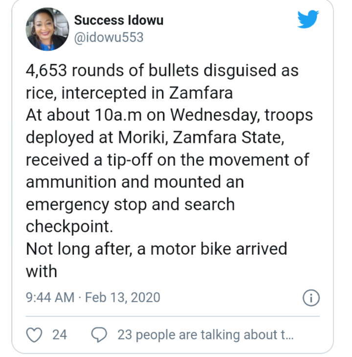 4,653 rounds of bullets disguised as rice, intercepted in Zamfara