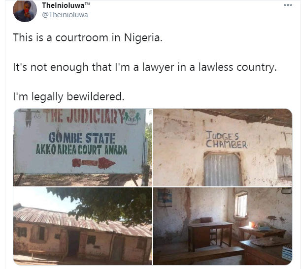 A Nigerian lawyer took to social media to share photos of an alleged courtroom in Nigeria.
