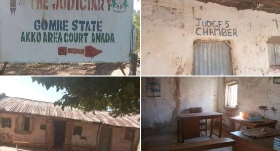 From the photos shared on Twitter by @Theinioluwa, it was gathered that the courtroom is located at Amada in Gombe state.