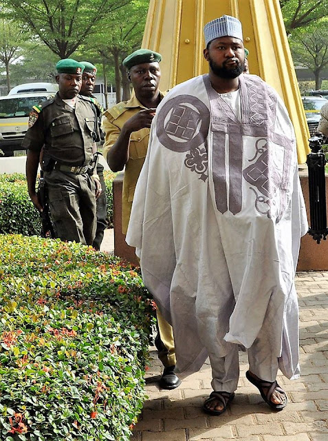 He was admitted to bail today in the sum of N100million with two sureties in the sum of N50million each. The sureties must either be a private businessmen or public servant not below the rank of assistant director. The sureties must have landed properties in Abuja or within Lagos metropolis excluding satellite towns.