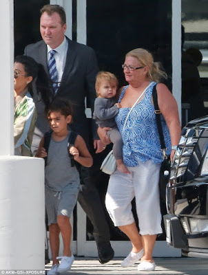 The Kardashian clan arrived home in LA from Cuba yesterday. Kourtney and her three kids were all together. Khloe shared photos of herself and North West while they were on board the plane back home to LA and they were also pictured with the rest of the clan. More photos after the cut…