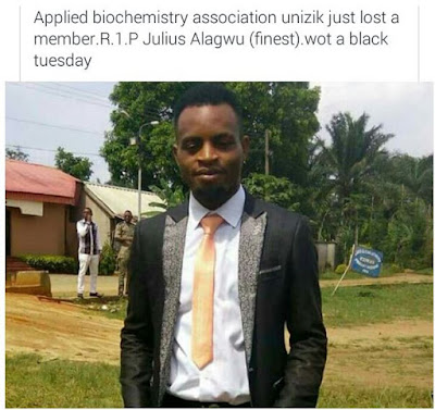 Students of Nnamdi Azikiwe University (UNIZIK), Awka, Anambra State mourn the loss of their colleague, Julius Alagwu ‘finest’ the who was allegedly $tabb€d to d€ath in the school.