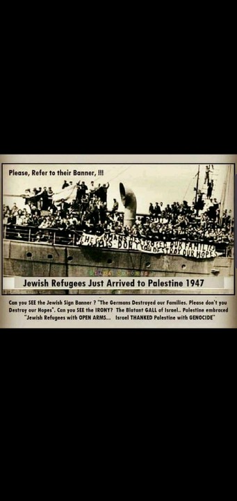 The banner reads :“The Germans destroyed our families please dont you destroy our hopes”