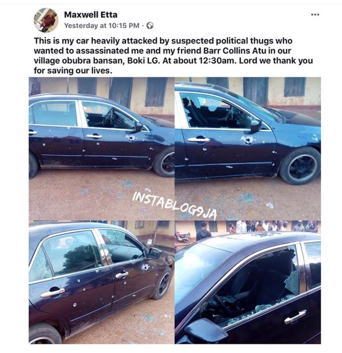 Man reveals the condition of his car after an assassination attempt on his life in Cross River State.