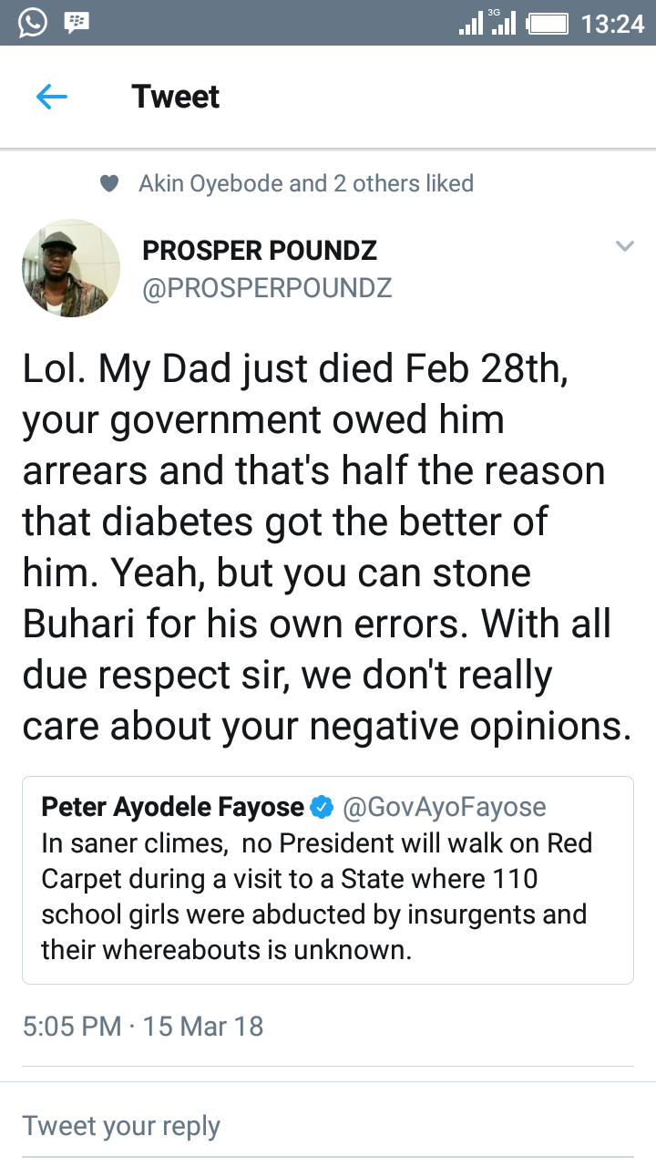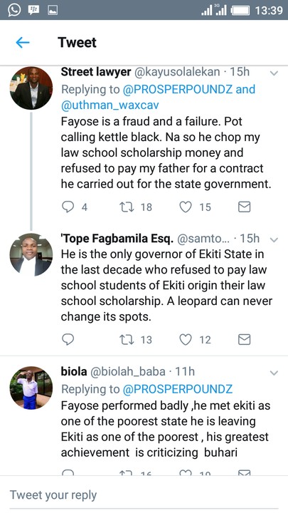 Ekiti people are now coming down very hard on Fayose on twitter. His days of masking his government’s failure by attacking Buhari is over.
