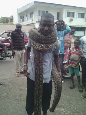 The man killed this huge snake at Laula Asalasi in Ilorin , Kwara State capital recently and showed it off…