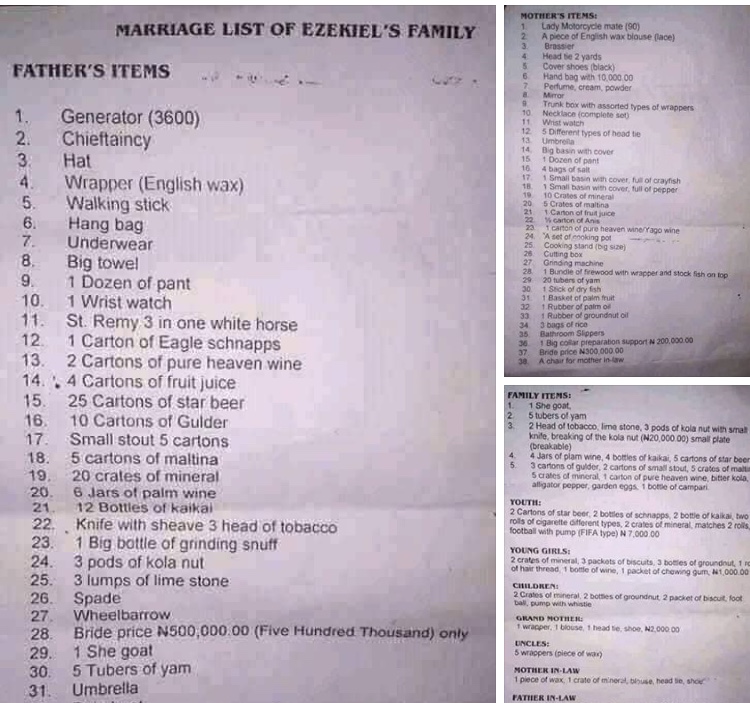 I don’t understand why some inlaws can be so heartless and make marriage look like a crimeJust check out the bride price list given to a man