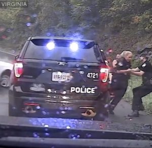 A footage has been released by the Police in Gate City, Virginia, USA showing the moment a police officer pulled his colleague away from an out-of-control vehicle on October 3.