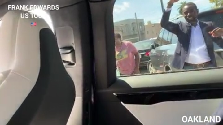 Nigeria’s Award-Winning Gospel Singer, Frank Edwards is on a 15-day “USA Melody Experience Tour”. On the day,-three of the tour, he was conveyed in a blue Tesla Model X from San Bernardino, CA to Oakland, California, where he performed next.