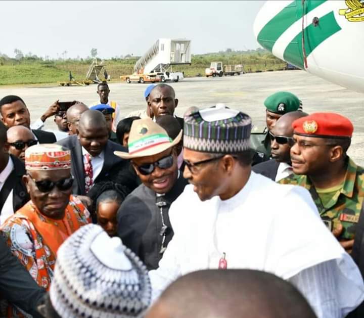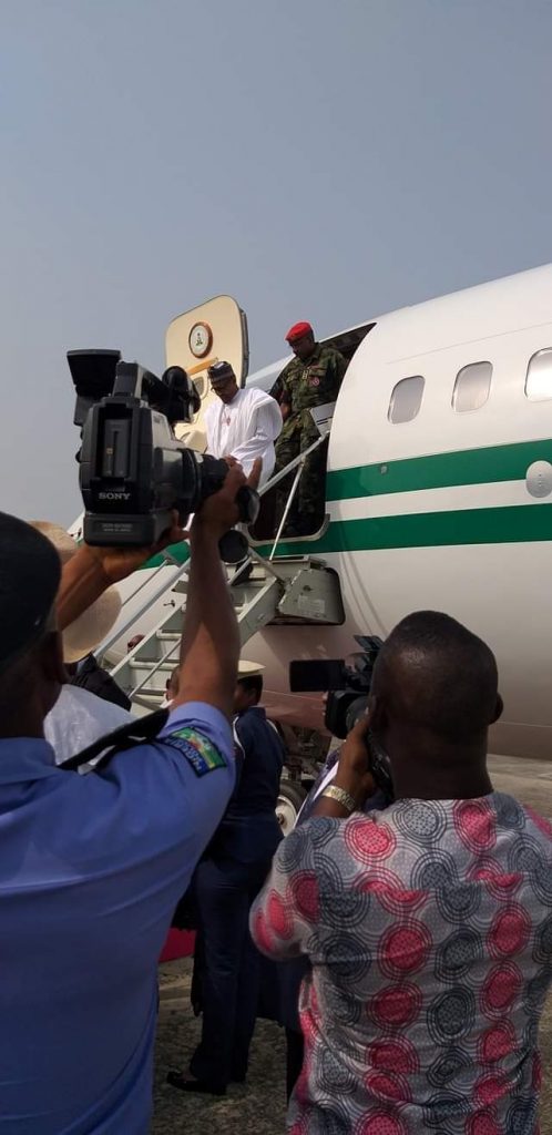 Akwa Ibom State Governor, Mr Udom Emmanuel, led a delegation comprising members of his cabinet and other dignitaries to receive Nigeria’s President Muhammadu Buhari on his arrival at the Victor Attah International Airport during the President ‘s visit to the state for the commencement of All Progressive Congress, APC, campaign for 2019 elections