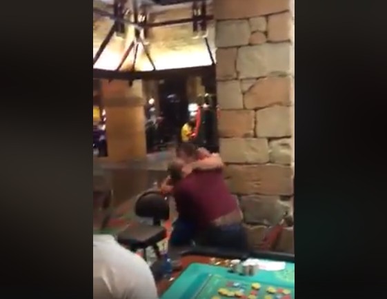 Both men were seen in the video below exchanging words and suddenly the white man lands a punch on one of the Nigerian men who wasted no time in tackling him to ground.