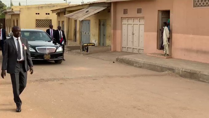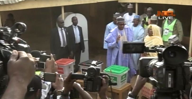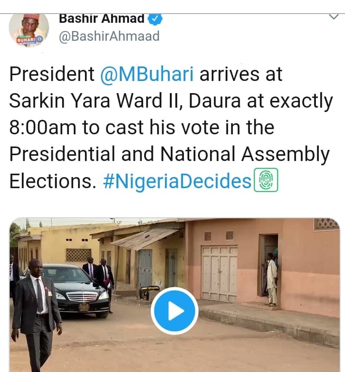 Watch the moment President Muhammadu Buhari arrrived Sarkin Yara Ward II, Daura at exactly 8:00am to cast his vote in the Presidential and National Assembly Elections.