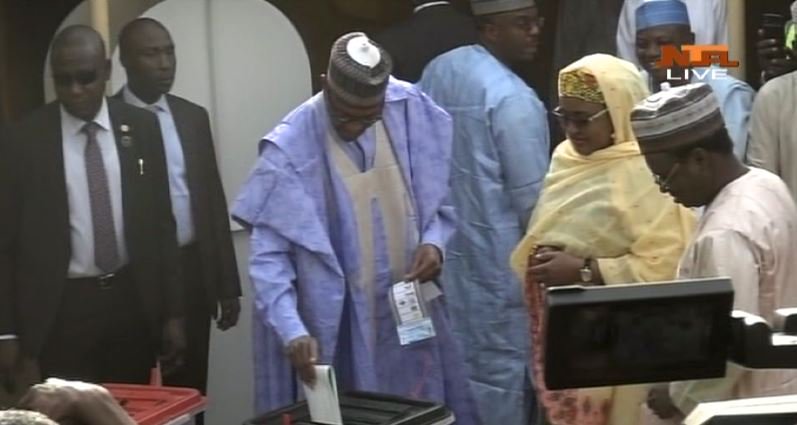 President Buhari And his beautiful wife, Aisha Buhari just voted.