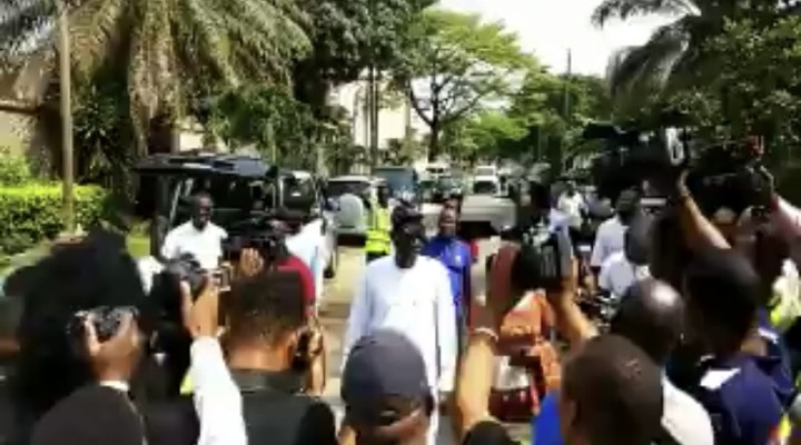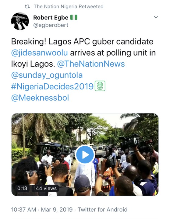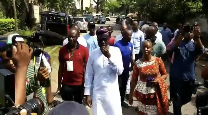 Here is the moment Lagos APC guber candidate Babajide Sanwo-Olu arrived at his polling unit in Ikoyi, Lagos…