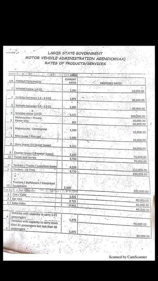 Its a season of increment in Lagos, from Land use charge to Lekki toll gate and now, the Lagos state Motor Vehicle Administration Agency (MVAA) is proposing almost 3000% increment of this list gets approved, AutoReportNG got this list online and we decided to have a look into it. Be the judge and have a closer look.