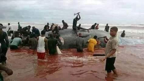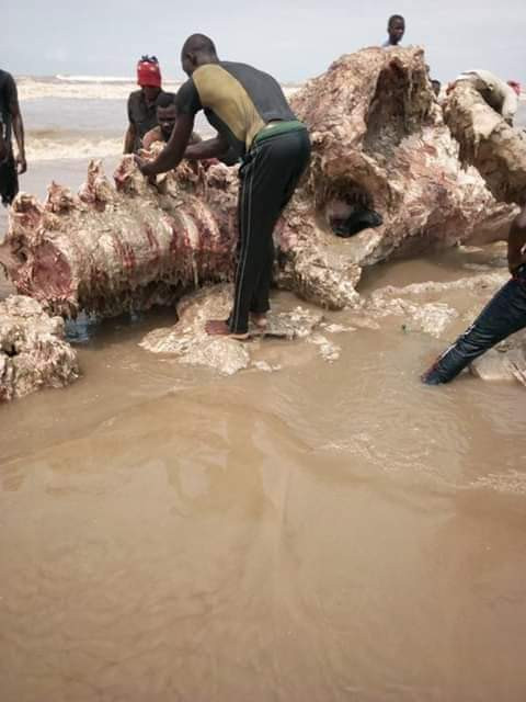 The whale reportedly washed ashore a beach in Okpoama and Onyekia communities in Brass Local Government Area of Bayelsa State.