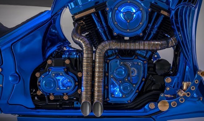 It took eight people and 2,500 hours or 104 days to complete the wonder bike. Gold are adorned in places where rubber bushes or washers are found on a regular motorbike.