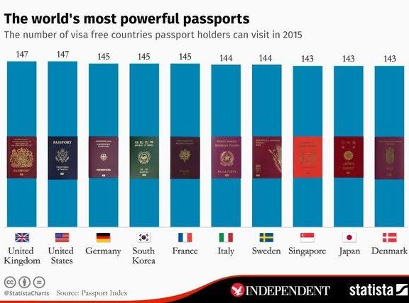 According to statistics shared by the World Economic Forum this morning, these are the countries with the world’s most powerful passports. Sadly, Nigeria’s passport is not included.