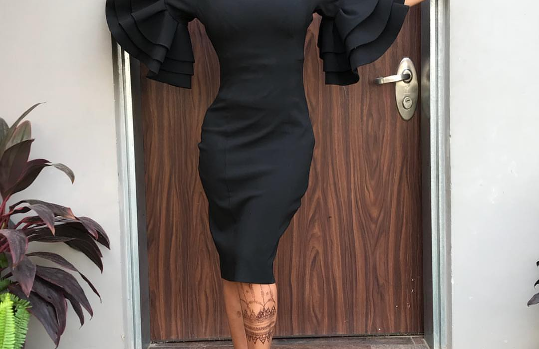 Tonto Dikeh looked fabulous as she stepped out for International Women’s day today.Dressed in a stunning black dress with her hair in a pony tail,the actress and mother of one also showed off her henna leg tattoo.